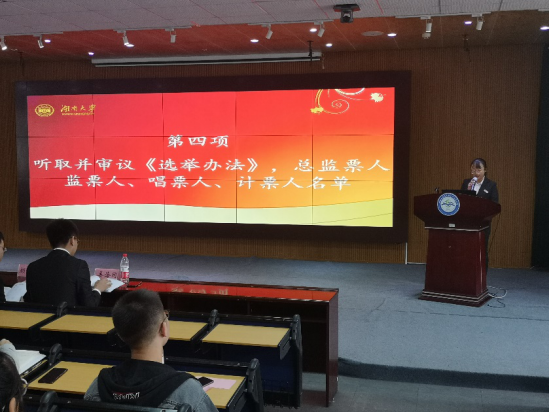 第十一届学生会工作报告》,并宣读《选举办法》,现场进行投票、检票、唱票。