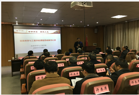 于2020年11月24日在全院范围内举行课程思政教学比赛,经过各系、教研室、中心选拔推荐,本次赛事共有16名教师参赛。教务处副处长刘杰、工会副主席杜玉丰、学院党政领导班子成员、院督导团到场指导,部分教师现场观摩。