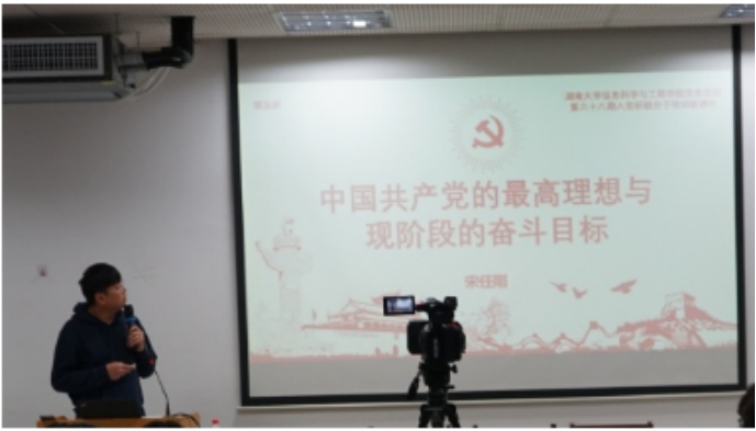 2020年11月30日,第六十八期入党积极分子培训班在信息院院楼314开授,第四讲《中国共产党的性质和宗旨》由张国田老师主讲,第五讲《党的最高理想与现阶段的奋斗目标》由宋任刚老师讲授,本次培训由学生党建兼干张雅静老师主持。