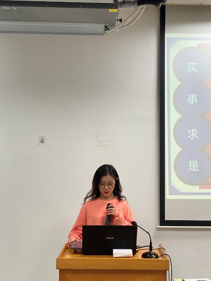 首先王馨语向我们讲述她和她的团队“云实”团队在2019-2020学年暑假社会实践的成果与经验心得。她们团队针对留守儿童的学习问题和孤寡老人在疫情期间受到的各种影响进行分析,并提出了相应的解决办法与建议。我们作为新一代的青年人,更应该担负起时代重任,关注特殊群体,携手硬核抗疫。