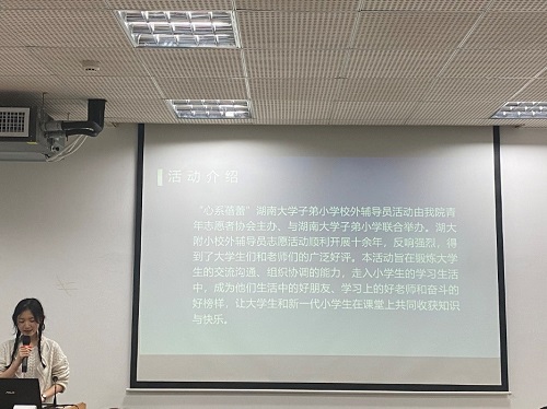 接下来由肖倩对湖大附小“心系蓓蕾”活动进行汇报。