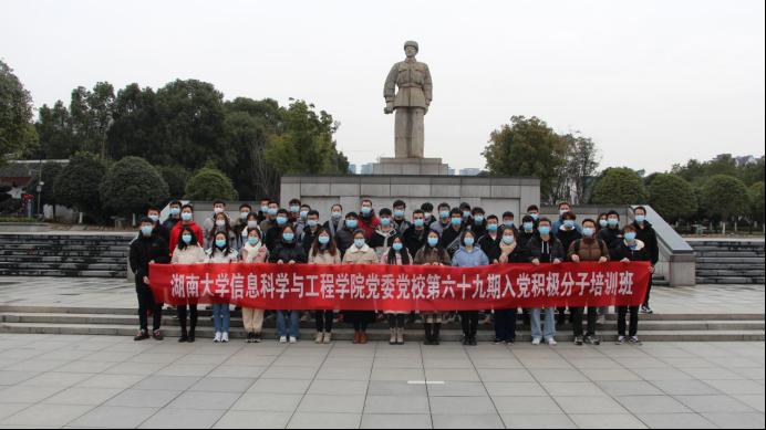 第六十九期入党积极分子培训班全体学员,乘坐大巴前往雷锋纪念馆、湖南省党史陈列馆参观学习。本次带领同学们参观的是信科院学生党建负责人张雅静老师。