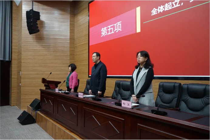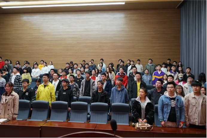 开班仪式第一项,全体成员起立并奏唱国歌。礼毕后,首先由向江老师简单介绍本次发展对象培训班的基本情况。本次培训班共有参训学员169人,分为11个学习小组。培训采取线上与线下相结合的方式进行,线上培训主要依托国家教育行政学院大学生网络党校平台组织实施。线下培训由学院党委组织实施,包括开班仪式、社会实践、交流研讨、撰写思想汇报、拍摄“党员好故事”主题微视频、结业仪式等。从线上到线下,从课堂到课外,再从理论知识到社会实践,从多方面多维度对发展对象进行培养。