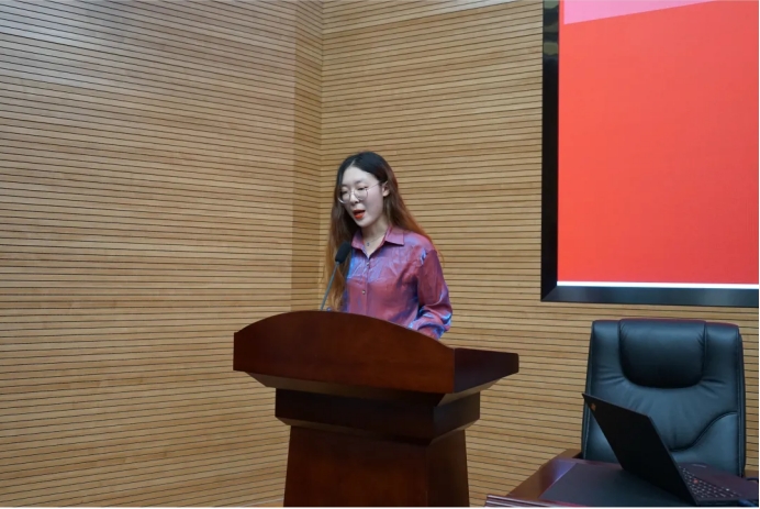 最后智能1802班丁泓宇同学作为学生代表发言,她通过分享自己身边的党员先进例子,表达了认真学习、积极向党组织靠拢的决心。她说道:很多时候,在我们看不见的地方,就有共产党人的影子,他们无私奉献,发光发热,就像一把火点燃另一把火,一份希望带动另一份希望,连成一片,为我们保驾护航。