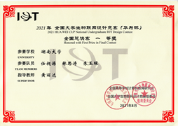 2019级本科生任昶源、林思涛、朱玉琛组成的参赛队伍,在黄丽达老师的指导下,完成作品“老年人医疗关怀系统”,获得全国总决赛一等奖,并同时荣获中国电信天翼物联特别创新奖。