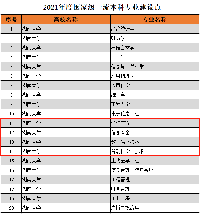 通信工程、智能科学与技术、信息安全与数字媒体技术共4个专业入选。
