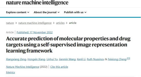 李肯立/曾湘祥教授课题组在分子性质与药物靶标预测领域取得重大进展,并在Nature子刊《Nature Machine Intelligence》在线发表题为“Accurate prediction of molecular properties and drug targets using a self-supervised image representation learning framework”的研究论文,该研究提出了一个基于分子图像的无监督深度学习框架——ImageMol。