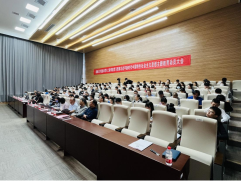 在201报告厅召开学习贯彻习近平新时代中国特色社会主义思想主题教育动员会,深入学习贯彻习近平总书记重要讲话精神,贯彻落实党中央和教育部、湖南省委关于开展主题教育的部署要求,对全院深入开展主题教育工作进行动员和部署。院长唐卓主持会议,院党委书记龚完全作动员报告,学校主题教育第三指导组蔡建国同志、李海滔同志、靳琳同志出席会议,蔡建国代表指导组作指导讲话。学院全体教职工党员、学生党员代表参加动员会。