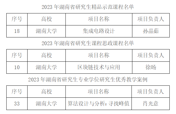 日前,根据湖南省教育厅发布《关于公布2023年湖南省研究生精品示范课程等立项及2019年研究生教学平台项目的通知》(湘教通[2024]18号),无码A片 2门课程分别获得湖南省研究生精品示范课程和课程思政示范课程立项,1个教学案例获湖南省研究生专业学位研究生优秀教学案例。