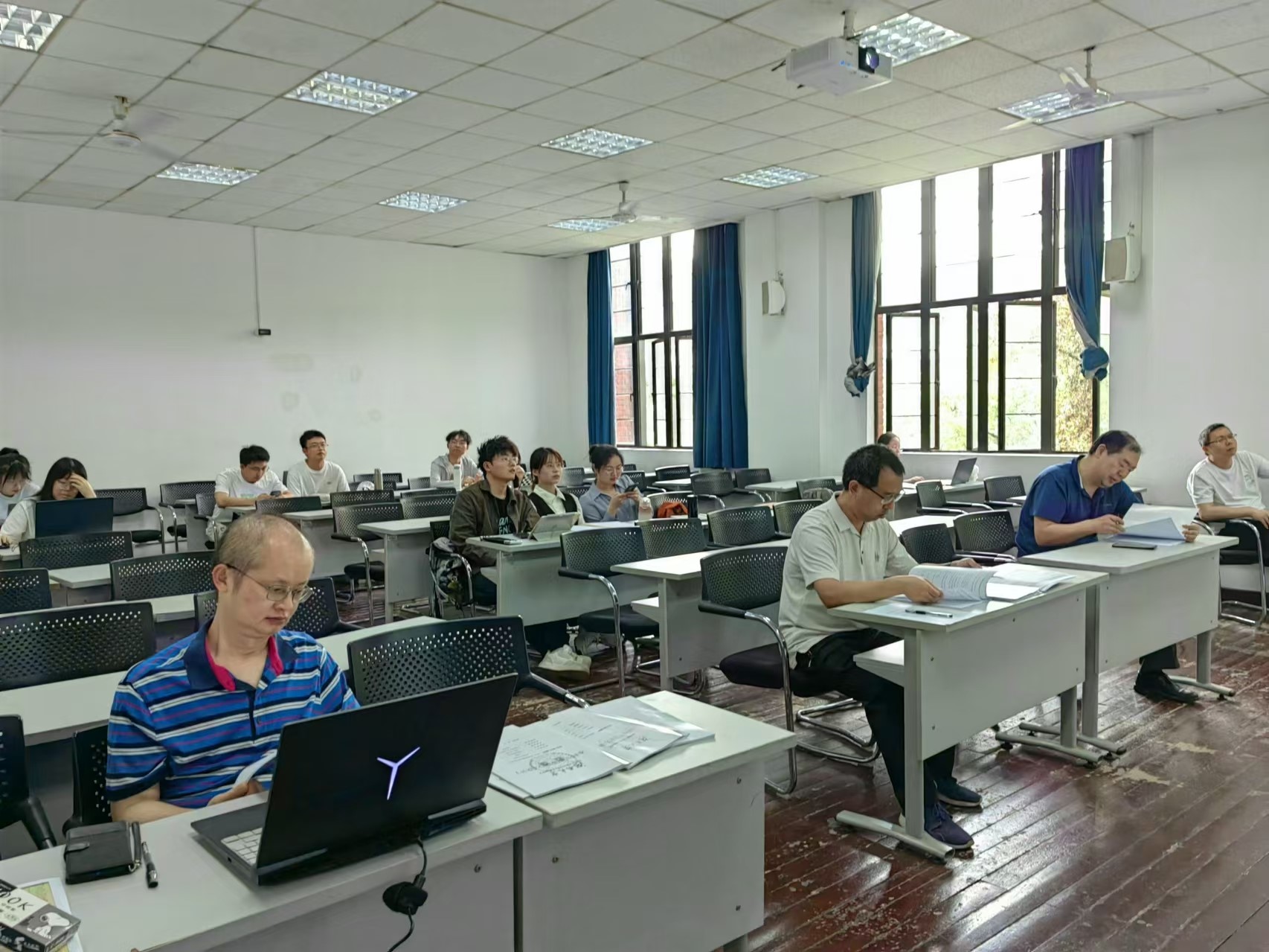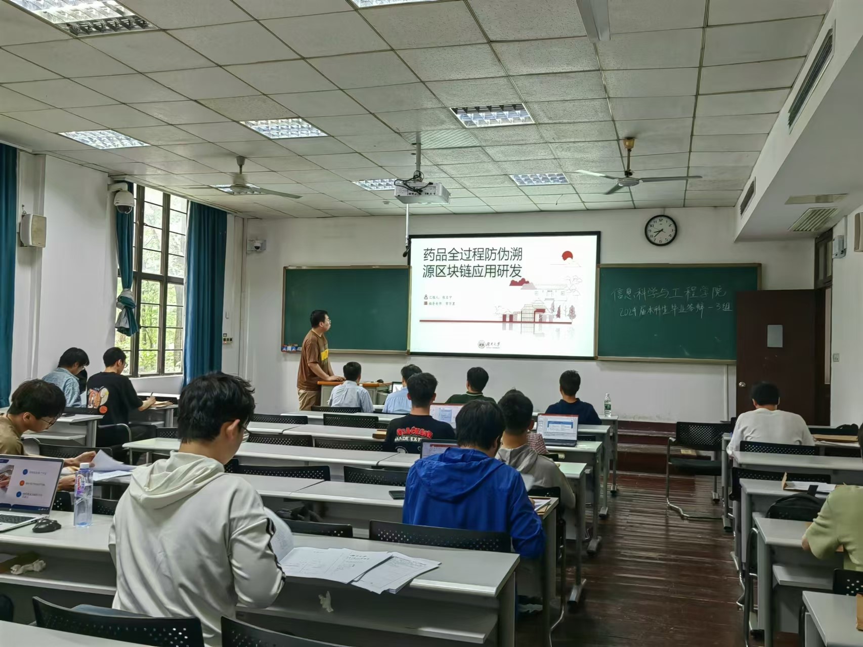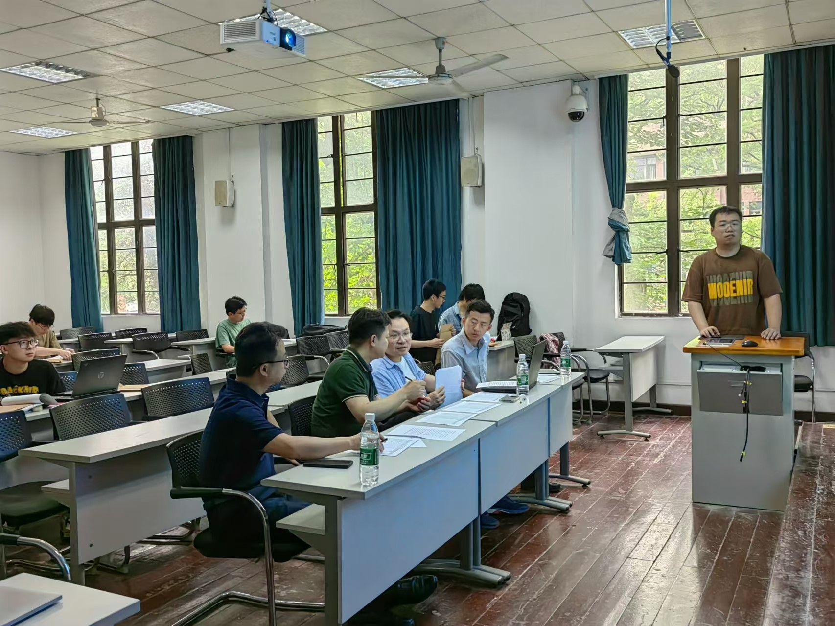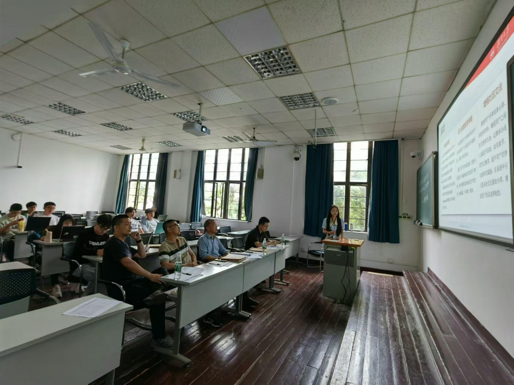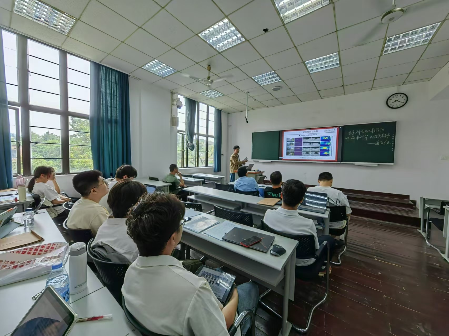 答辩现场,学生们通过PPT报告展示和问答形式,从研究内容、相关工作、创新点、实验分析等方面进行了汇报,同时,答辩教师根据每位学生的汇报情况进行了提问和点评,并提出了可行性改进意见。