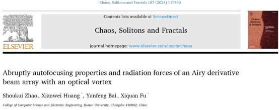 近日,Elsevier旗下权威期刊《Chaos, Solitons & Fractals》(SCI一区)在线发表了复杂环境量子信息感知及应用课题组在利用新型光束进行粒子操控研究方面的新成果,论文题为“Abruptly autofocusing properties and radiation forces of an Airy derivative beam array with an optical vortex”(Chaos, Solitons and Fractals, 187, 115480 (2024))。信息无码A片