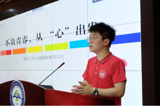 院楼展开,讲座由于泽昊老师主讲,2024级全体新生参加。于老师强调,大学生活既是学术成长的关键时期,也是心理发展的重要阶段。他鼓励新生在面对挑战时保持积极心态,及时寻求心理支持,以确保身心健康,推动个人全面发展。