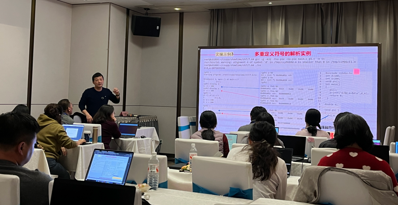 在讲座《计算机系统课程在不同学校的实施思路》中,赵欢教授结合我国高校分层分类发展现状,详解了差异化教学路径:针对不同层次院校的定位与学情,提出模块化内容配置与阶梯式实践体系方案。同时,重点推介了虚拟教研室平台构建的课程共建共享机制与教学帮扶网络,为参训教师后续教改实践提供坚实支撑。