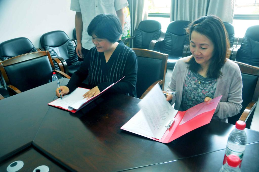 林红利副教授与吴芳副总经理在电声智能营销研究中心合作协议书上签字。