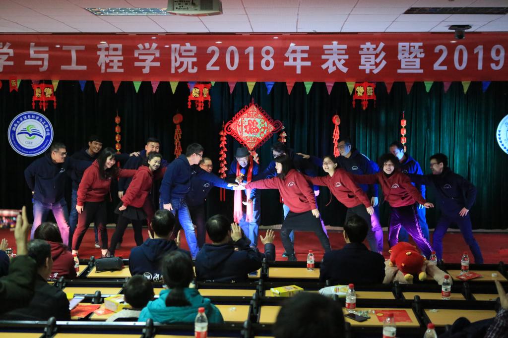 2018年表彰暨2019年迎新团拜会在学院330报告厅举行。院长李肯立、书记杨忠旺等学院领导班子成员,各系、中心主任,六系、教学部、实验中心、行政全体教职员工出席团拜会。