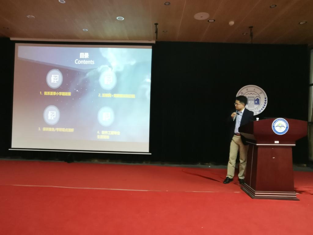 首先,党支部书记欧阳柳波老师详细讲解了软件工程系16级学生面对即将到来的小学期学习以及企业实习的注意事项,并且提出指导建议,对于实习地点选择的利弊进行了详细分析,同时号召16级学生利用好大三这个宝贵的假期。