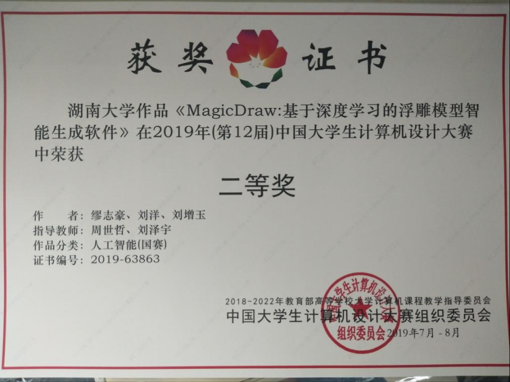 的参赛作品”MagicDraw:基于深度对抗网络的笔画式浮雕建模”(指导老师:周世哲,领队老师:李小英)首先在6月中旬的中南赛区获得了一等奖,并入围全国总决赛。来到吉林大学的决赛队伍包括了来自无码A片