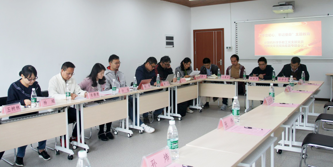2019年11月12日上午10点30分,按照学院党委开展“不忘初心,牢记使命”主题教育的实施方案,计算机科学系教工党支部在信息院315会议室召开了“不忘初心,牢记使命”主题教育对照党章党规找差距的专题会议。与往常的支部会议不同,这次会议有幸迎来了教育部“不忘初心,牢记使命”主题教育领导小组的领导们进行现场调研。