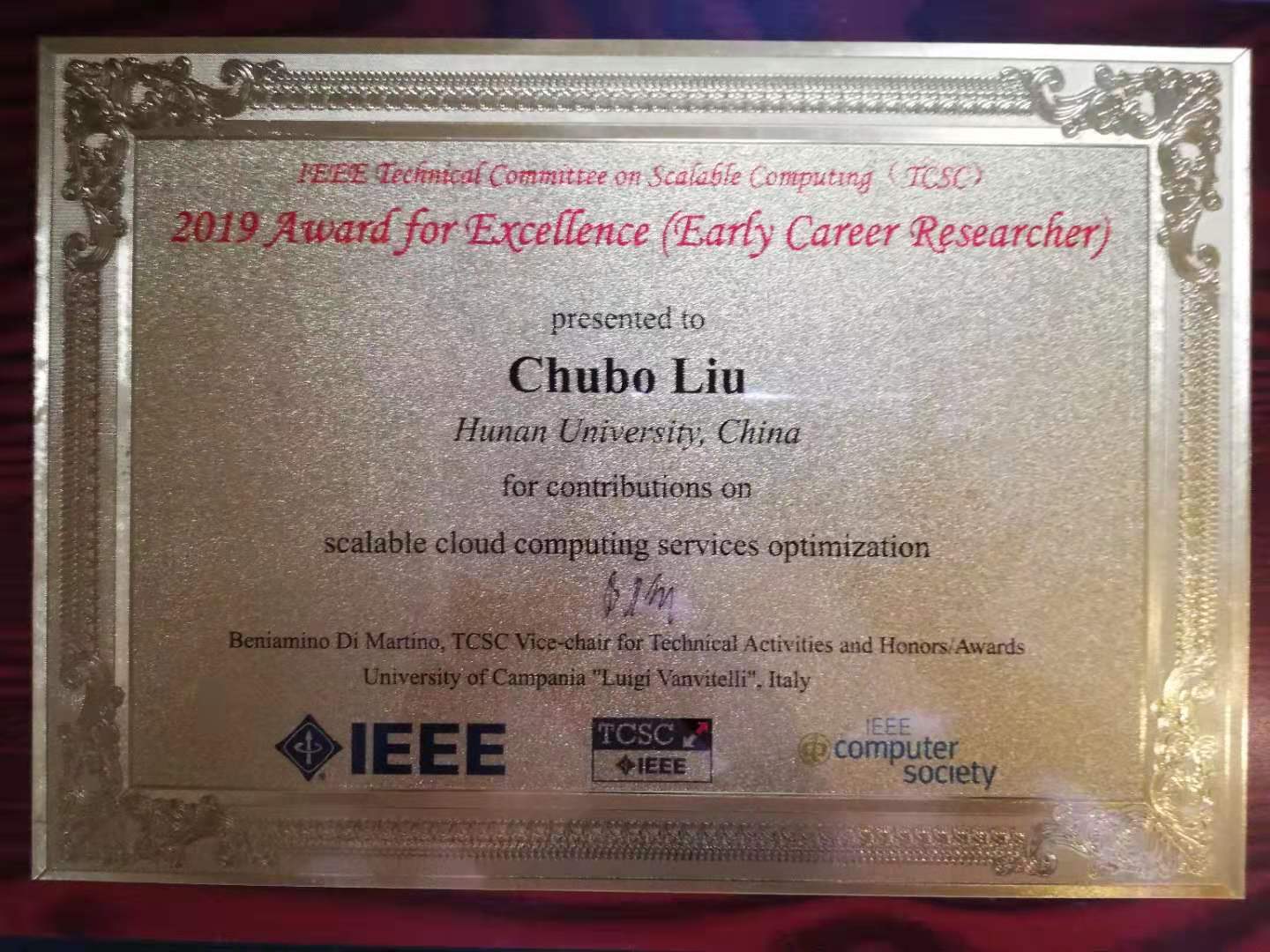 副教授刘楚波脱颖而出,荣获2019年“优秀青年学者奖”(IEEE TCSC Award for Excellence for Early Career Researchers-2019)。同时,其与所在的团队又共同荣获年会的“杰出论文奖”。