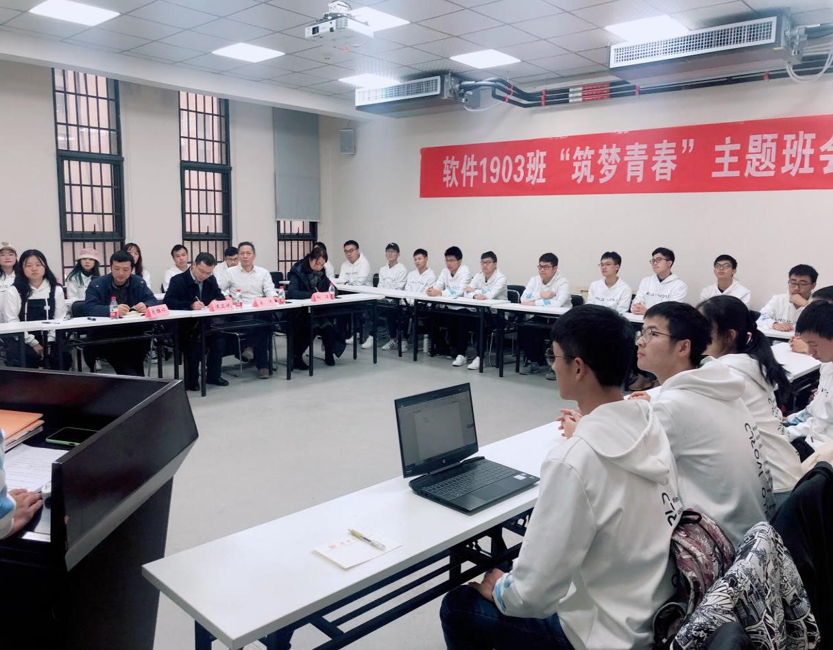 软件工程1903班举行“筑梦青春”主题班会。副校长汪卫斌参加班会,并与同学们亲切交流,帮助同学们增强筑梦信心,拓宽筑梦思路。