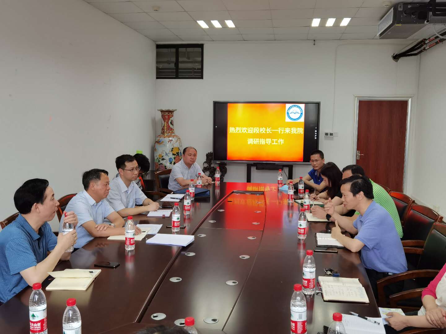 调研指导学院建设发展工作,听取学院工作汇报,与学院领导班子成员和青年教师代表进行座谈交流。