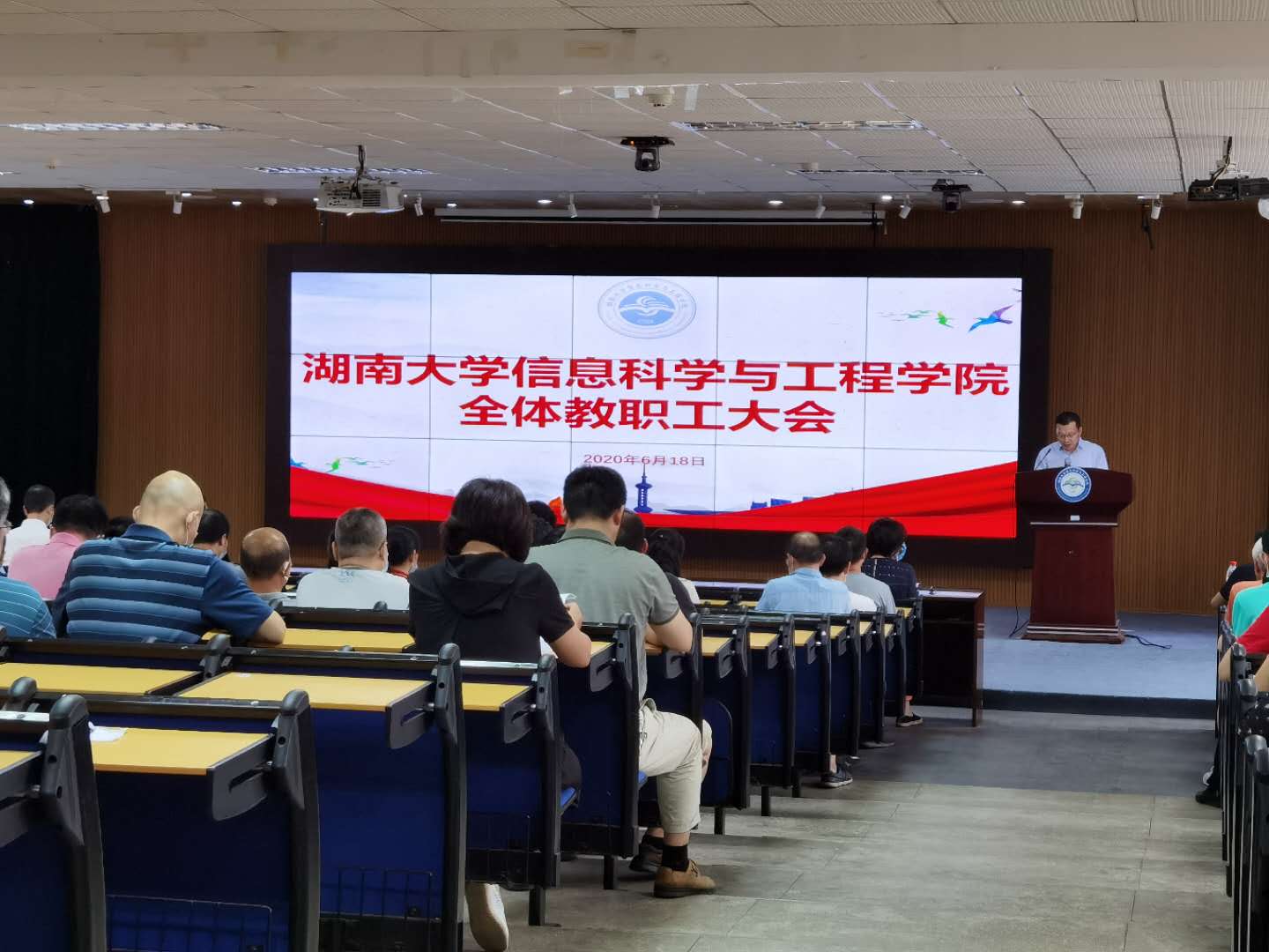 李肯立院长代表学院新任行政班子表态,他在发言中衷心感谢校党委的信任和学院干部师生的支持,深深感到这份信任和重托源于广大师生对学院未来发展的期盼。他认为信息科学与工程学院在前任班子,特别是李仁发同志的领导下已积淀了丰富的文化底蕴,取得了不错的成绩,我们要在学科建设中继续努力,争取在已经打下的坚实基础上有新的突破,取得更好的成绩。李肯立院长指出,新一届学院行政班子成员要把责任扛在肩上,做到用心、用力、用齐和廉洁自律;要对学院工作运行情况进行深入的了解,既问计于教职工,也要问计于学生;要适应新常态,迈向新目标;结合学校“双一流”建设,积极推进学院一流学科建设,在“十四五”期间努力谋求新的发展,促进学院各项事业有更好的提升。