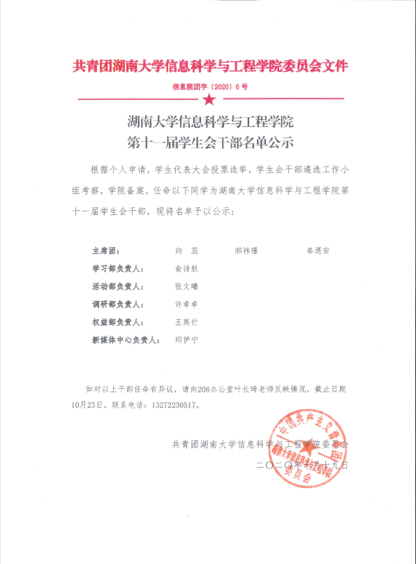 无码A片 第十一届学生会干部名单公示