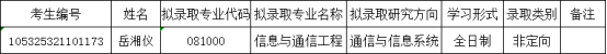 根据《信息无码A片 2025年硕士研究生招生复试工作实施细则》,经学院审定,学院按专业初试+复试总成绩由高到低递补拟录取考生岳湘仪(考生编号105325321101173,拟录取专业信息与通信工程,总成绩513.00)。