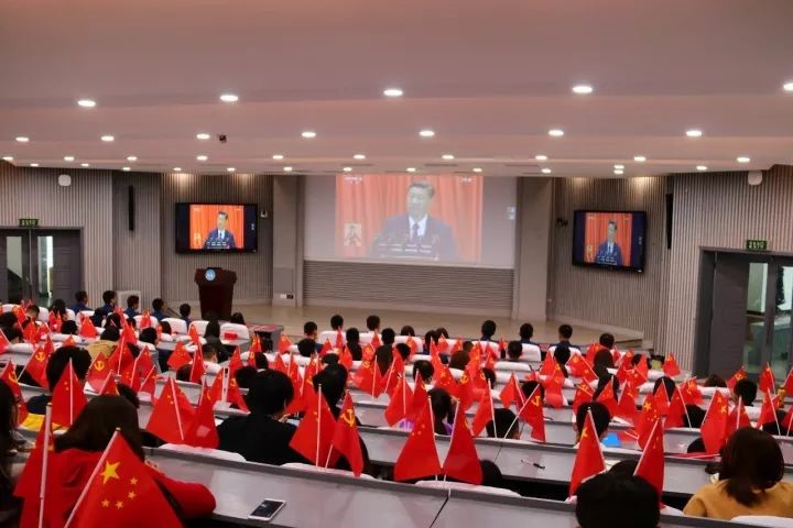 喜迎十九大,内心波涛澎湃汹涌。看见有那么多的学生,老师为了共同观会,齐聚一堂,足以可见,所有的人为中国的快速发展而激动骄傲。