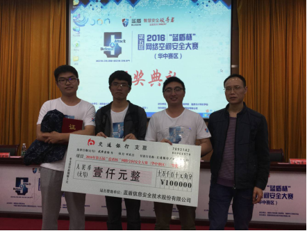 The Bluedon Cup 2016 was held by Hunan Provincial Institute of Computer, CCF Young Computer Scientists and Engineers Forum (YOCSEF Changsha) sponsored by Xiangtan University and Xiangtan City Computer Association. The Cyberspace Security Competition took place on May 28th - 29th 2016 in Xiangtan University. One team from HNU CSEE for the first time obtained the third prize in the competition. The three members in the team are WU Wenjun, SUN Jie and LI Xuerui. The other two teams from HNU CSEE won the "Team Prize for Excellence". They all bring honors to our College.