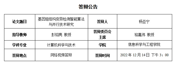 Yang Yaning, Wang Xiaoqi, Xu Ying, Yang Chao, Jiang Bin, Peng Shaoliang. ParaPindel: a scalable coordinated parallel detection framework for human genome-wide structural variation[C]//2021 IEEE International Conference on Bioinformatics and Biomedicine (BIBM). IEEE, 2021: 574-579. (CCF B类会议,一作)