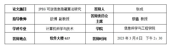 6. 张成,欧博. 基于 JPEG 图像的模块化可逆信息隐藏方法, 中国图像图形学报, 2023. (第一作, CCF 中文T2 , 审稿中)