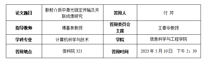 付芹博士生答辩公告