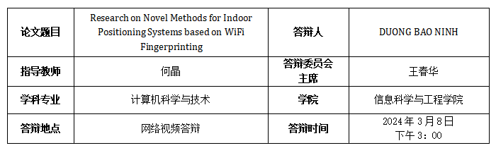 [2]. Duong Bao Ninh, Jing He, Luong Nguyen Thi, Khanh Nguyen-Huu and Seon-Woo Lee, “A Novel Valued Tolerance Rough Set and Decision Rules Method for Indoor Positioning using WiFi Fingerprinting,” Sensors, vol. 22, no. 15, pp. 1-25, 30 July 2022 (SCIE-Q2).
