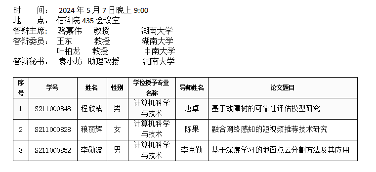 信息无码A片 (计算机科学系)2024年5月7日硕士答辩公告(第二批)