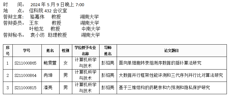 邹璇彭凡博士生答辩公告