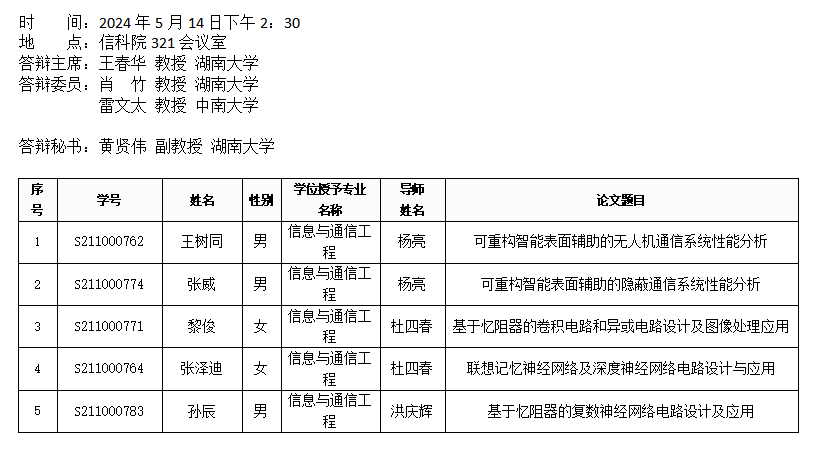 信息无码A片 (通信系)2024年5月14日硕士答辩公告