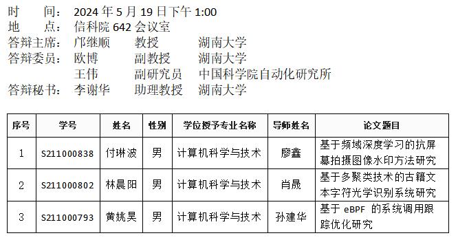 信息无码A片 (安全系)2024年5月19日硕士答辩公告(2)
