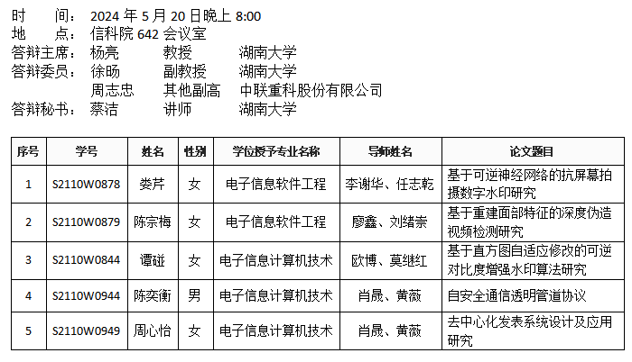 信息无码A片 (安全系)2024年5月20日硕士答辩公告(2)