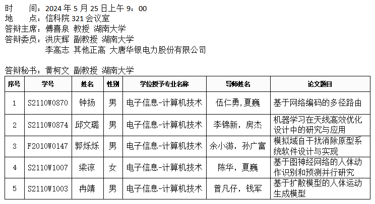 信息无码A片 (计科系)2024年5月24日硕士答辩公告(1)