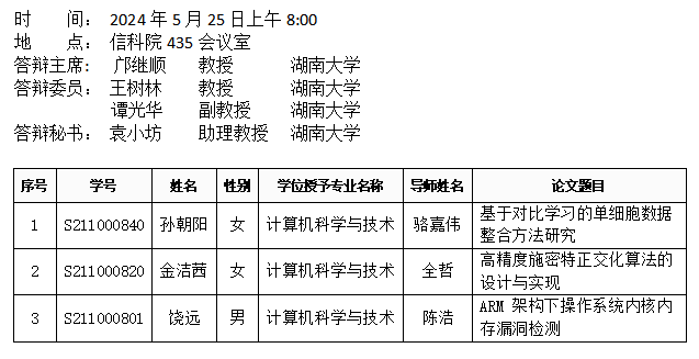 信息无码A片 (计算机科学系)2024年5月25日硕士答辩公告(2)