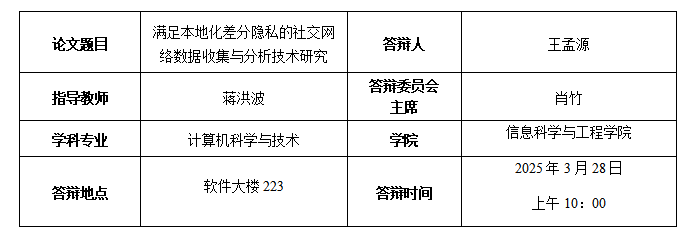 [2] Mengyuan Wang, Hongbo Jiang, Peng Peng, and Youhuan Li. Accurately Estimating Frequencies of Relations with Relation Privacy Preserving in Decentralized Networks[J], IEEE Transactions on Mobile Computing, 2024, 23(05), 6408-6422. (CCF A类期刊,第一作者)
