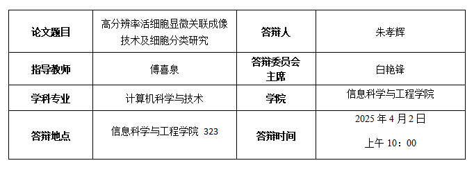 [3] Xiaohui Zhu, Yanfeng Bai, Wei Tan, Xiaoqian Liang, Qi Zhou, Jian Li, Weijun Zhou, Jintao Zhai, Xianwei Huang, Xiongwei Cai, and Xiquan Fu. Live Cell Imaging and Classification via Microscopic Ghost Imaging. Physical Review Applied (Under review).