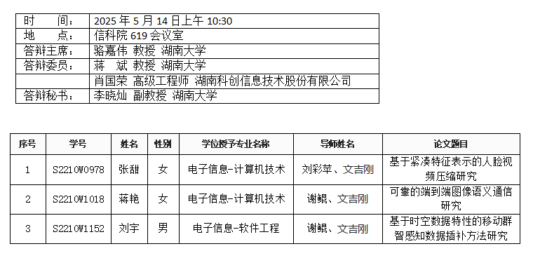 信息无码A片 (计算机工程系)2025年5月14日上午硕士答辩公告(2)