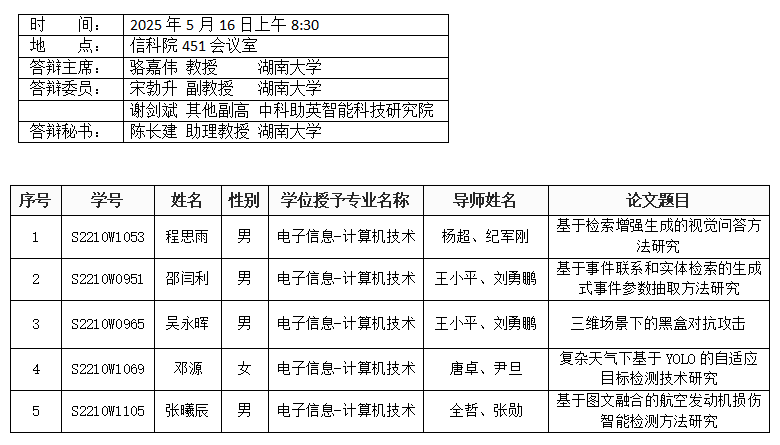 信息无码A片 (计算机科学系)2025年5月15日硕士答辩公告(2)