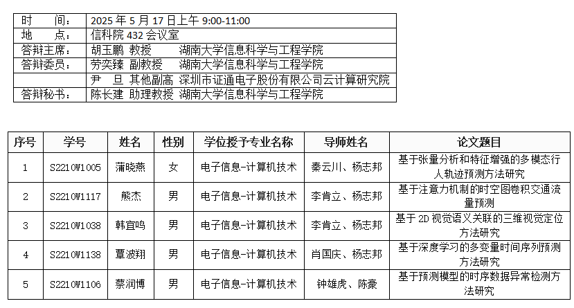 信息无码A片 (计算机科学系)2025年5月17日硕士答辩公告