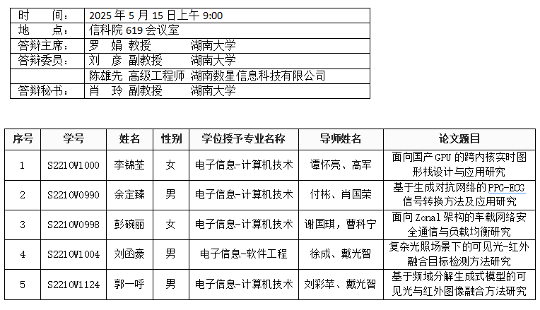 信息无码A片 (计算机工程系)2025年5月15日硕士答辩公告
