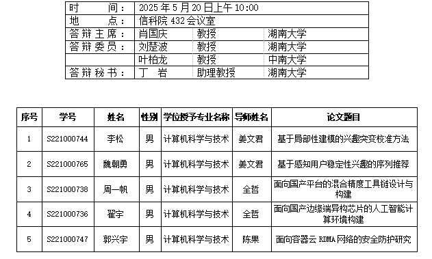 信息无码A片 (计算机科学系)2025年5月20日硕答辩公告(2)