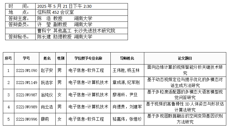 信息无码A片 (计算机科学系)2025年5月22日硕士答辩公告