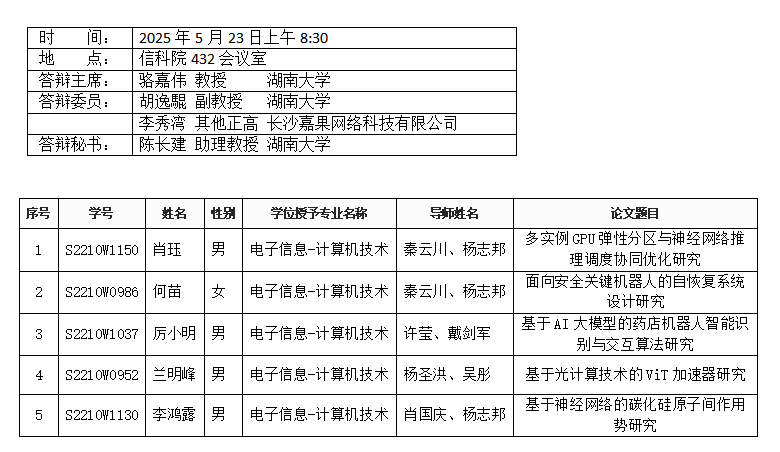 信息无码A片 (计算机科学系)2025年5月23日硕士答辩公告(1)